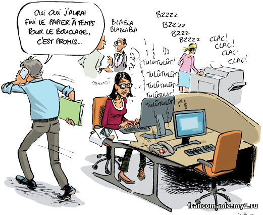 Henriette : Mais si, je viens d'y répondre ! Je viens de lui envoyer les chiffres. Paul vient de me les donner.Alain : Paul ne vous a pas appelée ? Henriette : Mais si, je viens de vous dire que si ! Paul m'a donné les chiffres ce matin, dès son arrivée. Bertrand : Henriette, je viens de recevoir un mail* de la direction. Nous venons de signer un gros contrat avec un client en Thaïlande ! Vous avez lu le message ? Henriette : Non, pas encore, je viens d'arriver, je n'ai pas encore eu le temps d'ouvrir mes mails. J'espère que ça va marcher, du reste, parce que mon ordinateur vient d'être réparé... et je me méfie de ces machines ! Alain : Quentin n'est pas encore arrivé ? Henriette : Si, il vient d'arriver. Il a laissé son sac à la réception et il est parti en réunion. Bertrand : C'est bizarre, je viens de voir Henri dans les couloirs, alors qu'il devait être à Berlin ! Henriette : Où est-ce que j'ai mis le rapport que j'ai préparé hier? Je viens juste de le ranger, et je ne le trouve plus ! Je deviens folle, ma parole ! *Remarque de vocabulaire: Le mot anglais "e-mail" est passe dans la langue française usuelle sous la forme "un mail" malgré la recommandation officielle d'utiliser les termes "un courriel" ou "un courrier électronique» (электронная почта) LE STRESS CONTINUE...