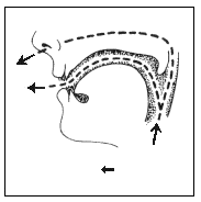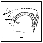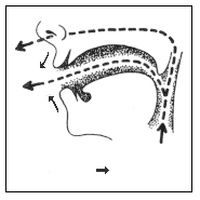 [ɑ̃] Носовая гласная Гласная значительно ослабленная. Язык cлегка отдален. Pот хорошо открыт. Губы округлены, уголки их не выражены. Heмного воздуха проходит через нос.
